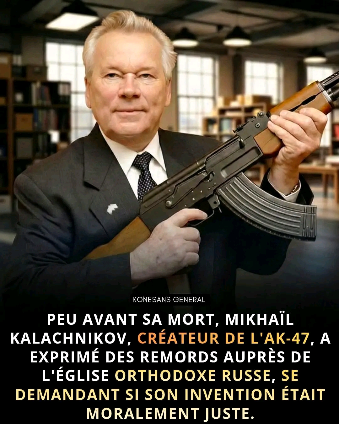 Peu avant sa m**t, Mikhaïl Kalachnikov, le célèbre créateur du f***l d’assaut AK-47, a exprimé ses remords auprès de l’Église orthodoxe russe. Il s’est interrogé sur la dimension morale de son invention, consciente que son a**e a causé la m**t de millions de personnes à travers le monde.